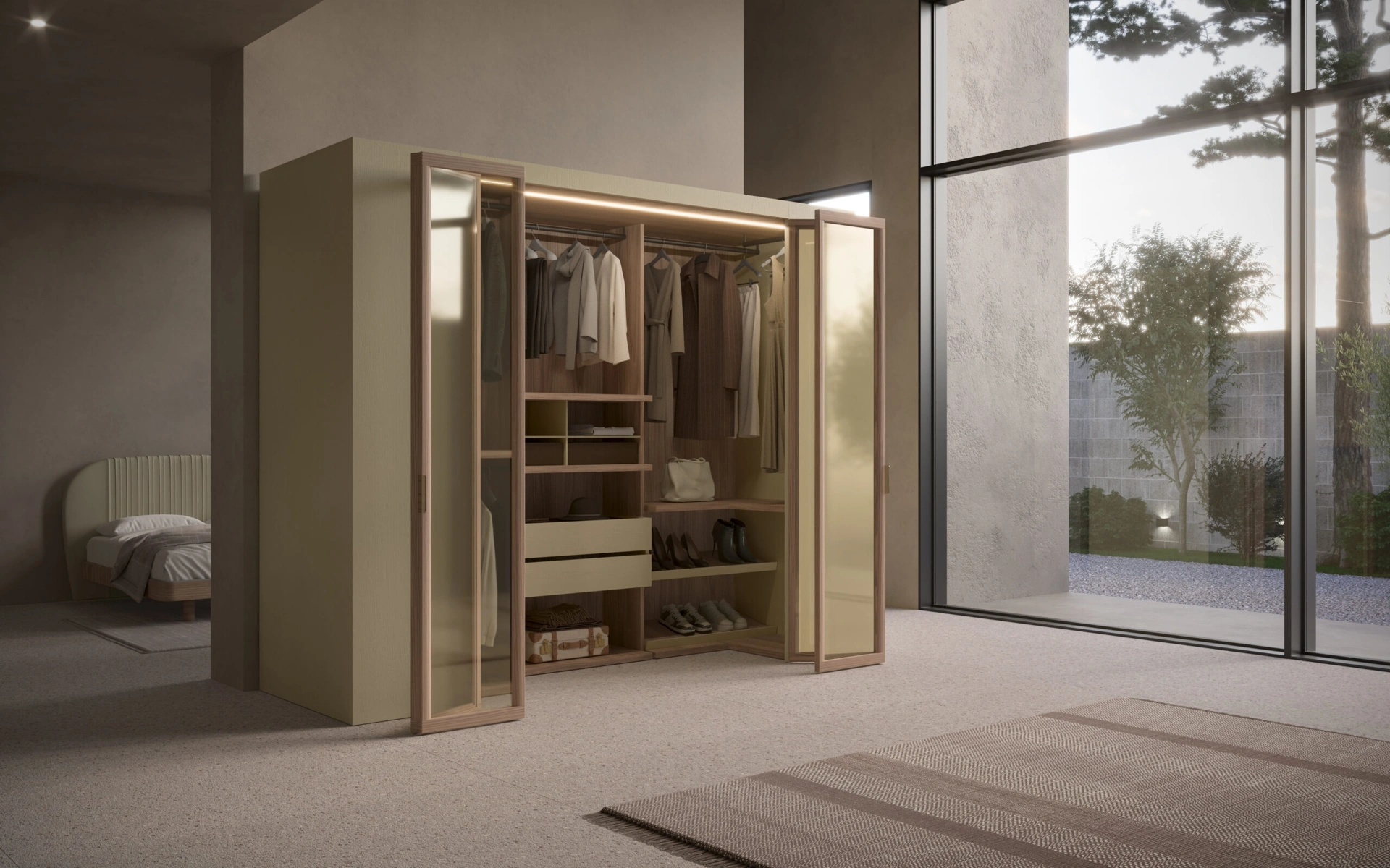 Cabina Armadio Hermes di Fazzini: compila il form per info e preventivi e arreda la camera da letto come l'avevi immaginata. Questo guardaroba è ideale per essere posizionato in un locale arredato con mobili e complementi moderni, coniugando perfettamente funzionalità e stile. La celebre firma Fazzini annovera una eterogenea produzione di Armadi cabine armadio con ante a soffietto, caratterizzati da design eccellente e funzionalità sempre utile. Per scegliere ispirazione nel progettare l’arredamento, vieni a trovarci e scopri un ricco catalogo di mobili e complementi tra cui questo guardaroba esclusivo e eclettico.
