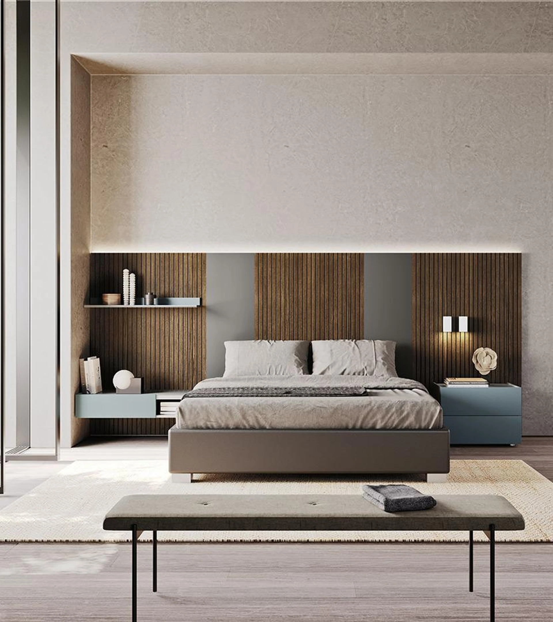 Per ultimare ottimamente l'arredo della tua camera da letto è indispensabile valutare gli accostamenti del letto con armadi e comodini, elementi accessori e quant'altro: se vuoi arredi moderni, il modello nell'immagine fa al caso tuo. Contattaci e ottieni informazioni sulla nostra serie di Letti matrimoniali con testiera: ottimizza la tua zona notte con le nostre composizioni. Questa è una soluzione di grande fascino, che porta con sé tutta la qualità garantita dalla pluriennale esperienza del marchio nel settore.