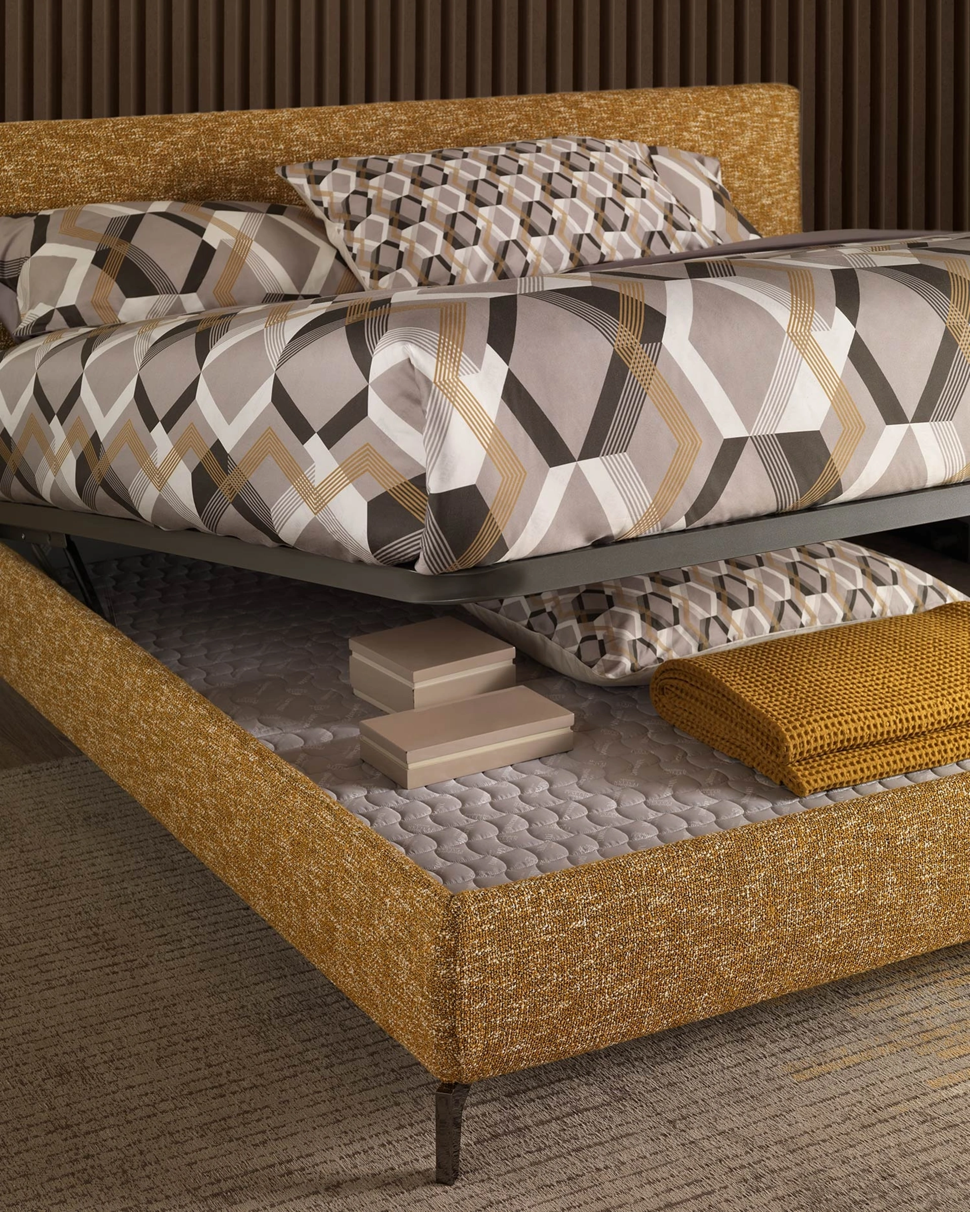 Qualità dei materiali e grande comfort sono gli ingredienti che connotano tutti i prodotti della marca, tra cui anche il letto in tessuto nell'immagine. Scopri in negozio un ricco catalogo di Letti con contenitore, mobili ed elementi accessori per la zona del riposo dei migliori brand. Se desideri progettare spazi moderni, ti aspettiamo per illustrarti la nostra design di Arredamento Casa per realizzare il tuo concept su misura. Con il Letto Soul Miage di Altrenotti del noto e rinomato marchio, leader del settore, potrai arricchire la tua zona notte assicurandoti comfort, funzionalità e un design pulito.