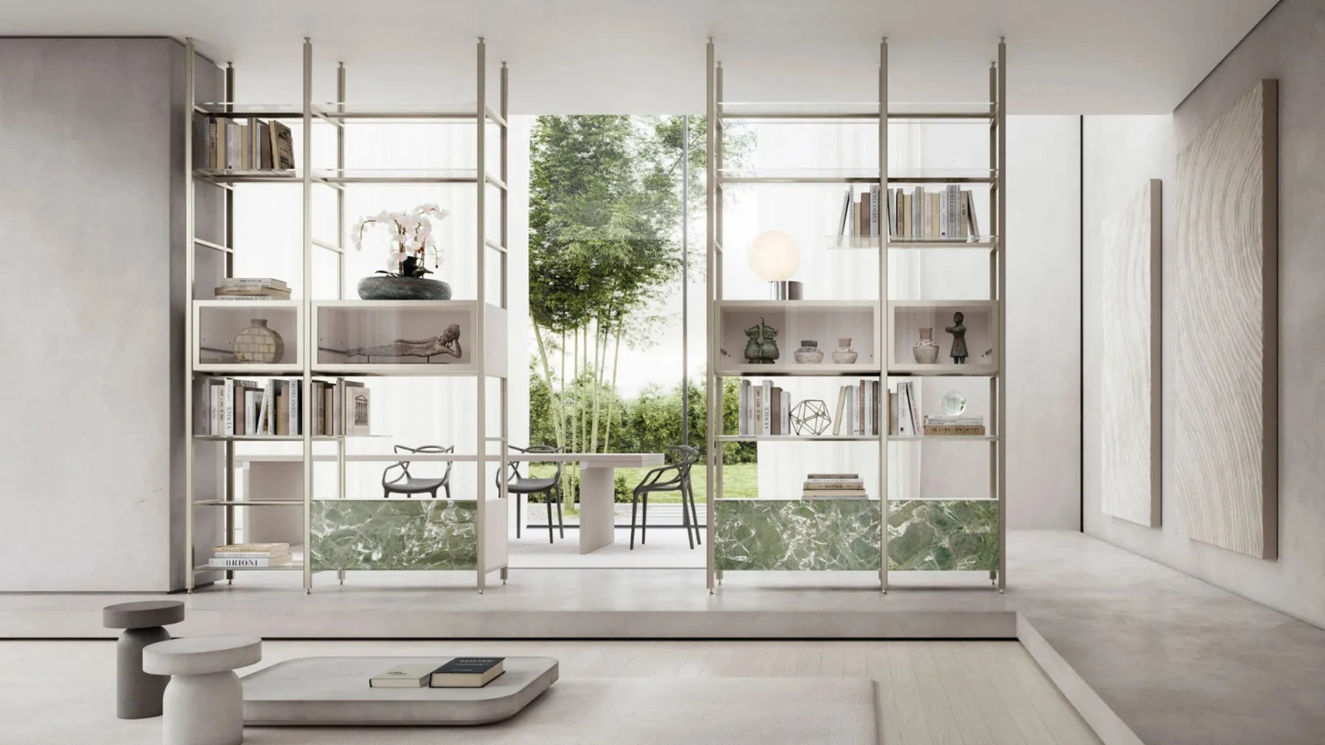 Le Librerie moderne sono sempre tanto gradite per organizzare la zona giorno e i muri, unendo ottimamente doti di praticità e design. Il living è, in assoluto, la zona della casa dove ci si dedica al relax ogni giorno, discorrendo con amici e parenti, riposando da soli oppure guardando la TV. Contattaci per info e preventivi sul modello presente in foto: se vuoi ultimare stanze moderne, allora questa libreria dalle forme decise fa per te. Le Librerie divisorie Doal sono disponibili in diverse forme: angolari, in linea, sospese e realizzabili su misura per te con differenti accessori, mensole e vani.