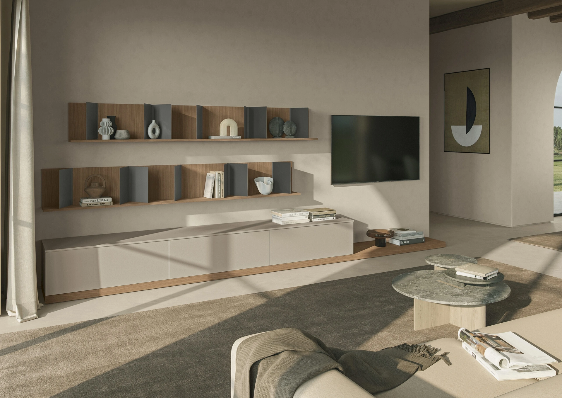 La Parete Attrezzata Night & Day L01NS di Colombini Casa in foto, con finitura in melaminico, risolve le più particolari problematiche abitative di stile e spazio senza rinunciare alla ricerca stilistica. Un po’ librerie, un po’ contenitori ed espositori: le Pareti Attrezzate sono ideali per arredare un luogo pratico e dinamico. Anche in un soggiorno non troppo grande, questo tipo di arredo riesce a ottimizzare gli spazi usufruendo al meglio di ogni angolo e assicurando l'alta componibilità tipica delle soluzioni moderne. Se cerchi mobili salvaspazio e realizzabili su misura per te, contattaci e ottieni informazioni sull'Arredamento Casa delle migliori marche.